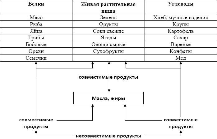 Учитывая, что разная пища для лучшего переваривания требует специфической среды, то в период оздоровления рекомендуется соблюдать раздельное питание.